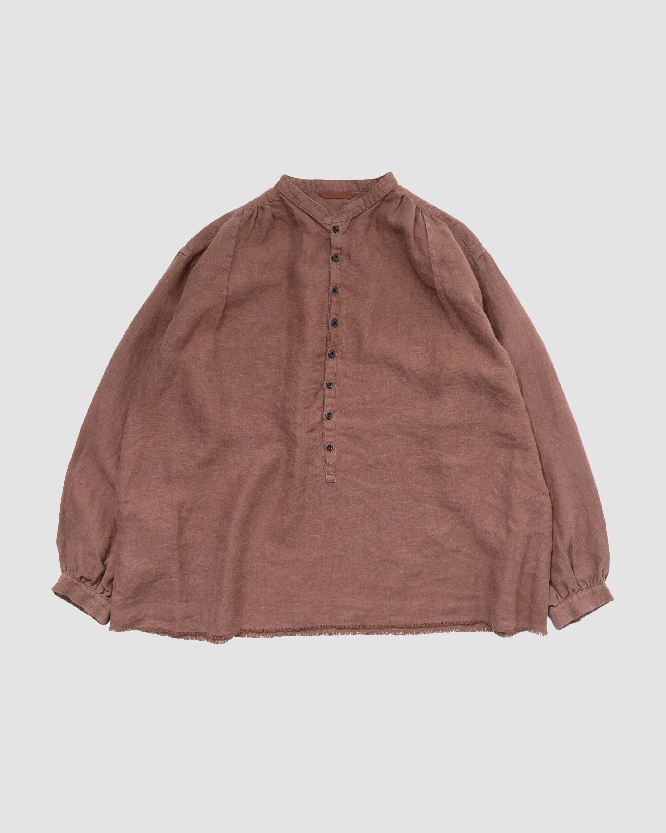 タテ・ヨコともに上質な麻糸を使用した生地で、クタッとした風合いになるような加工が施されており表面は微起毛になっている生地。繊維構造が中空のため、吸湿・吸汗性に優れており、通気性もよく洗濯するたびに繊維が丈夫になりしなやかになるため、肌あたりがよく柔らかな着心地になっていきます。