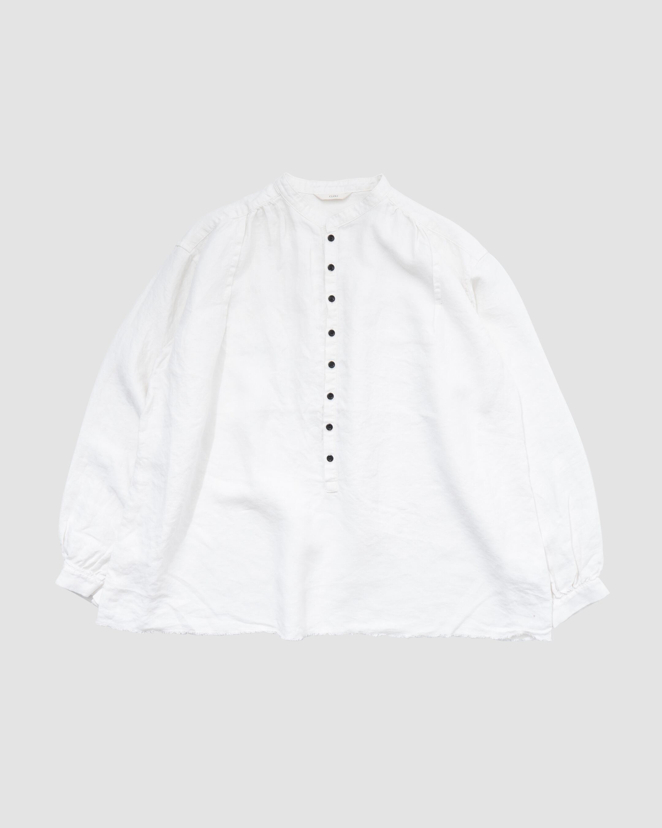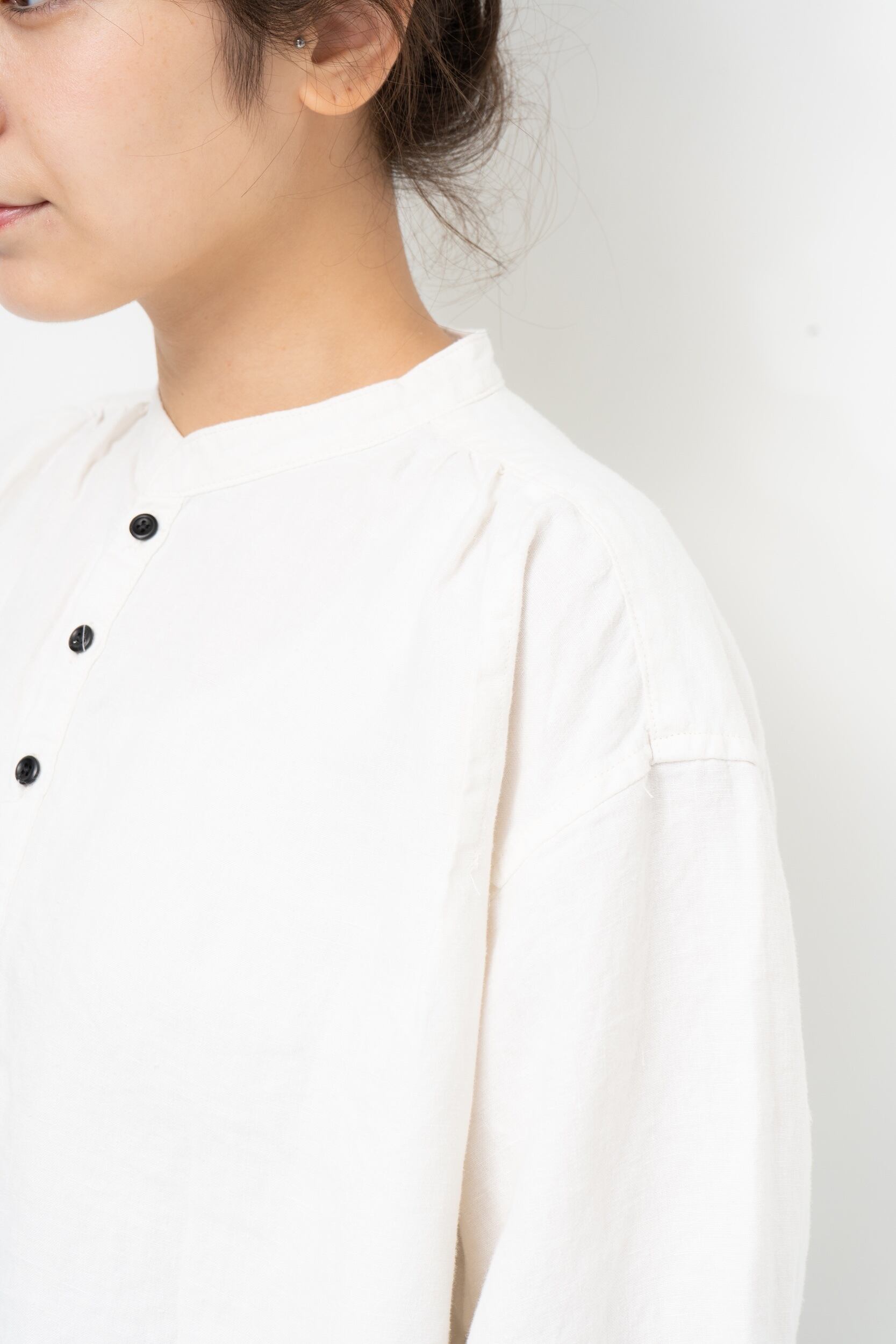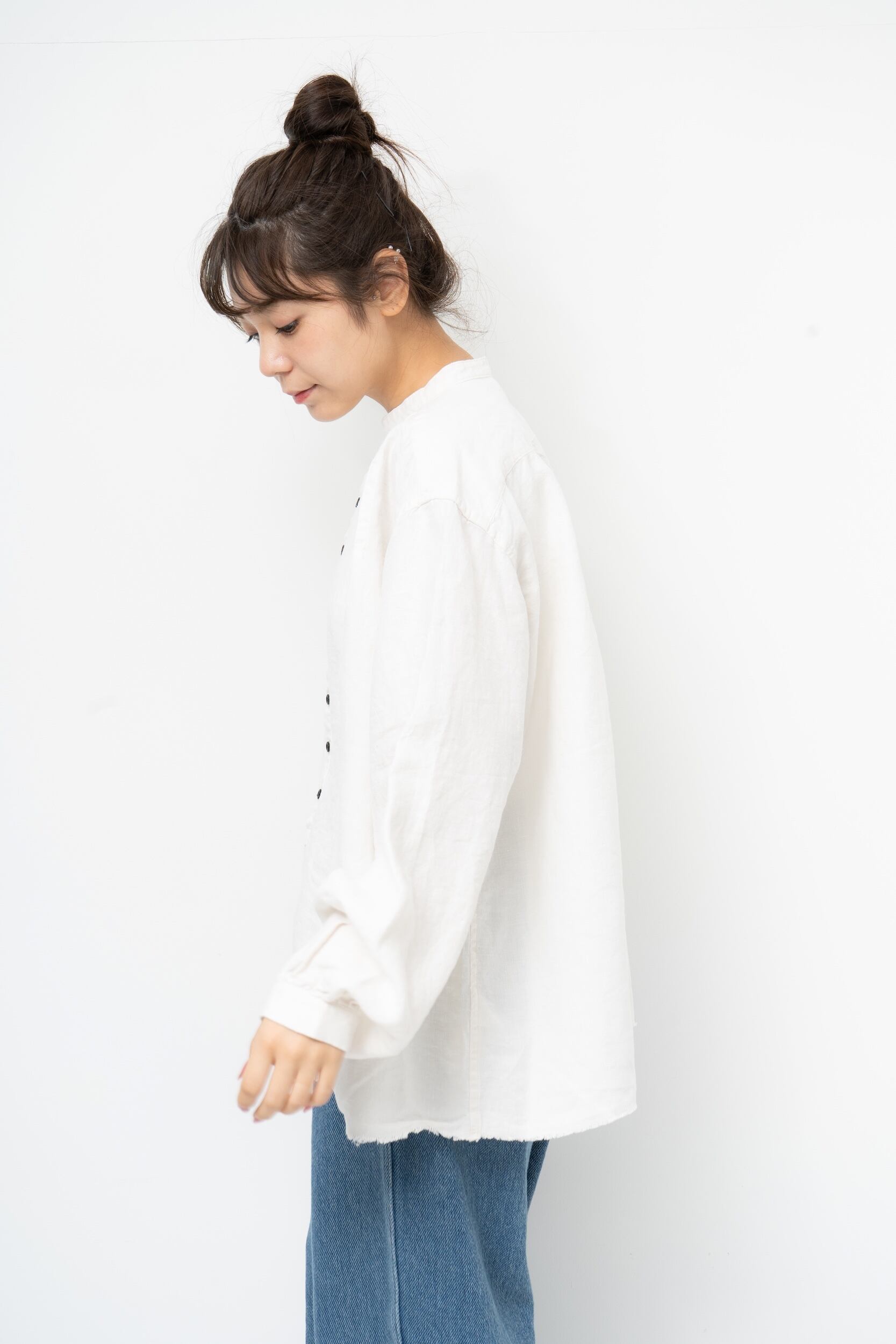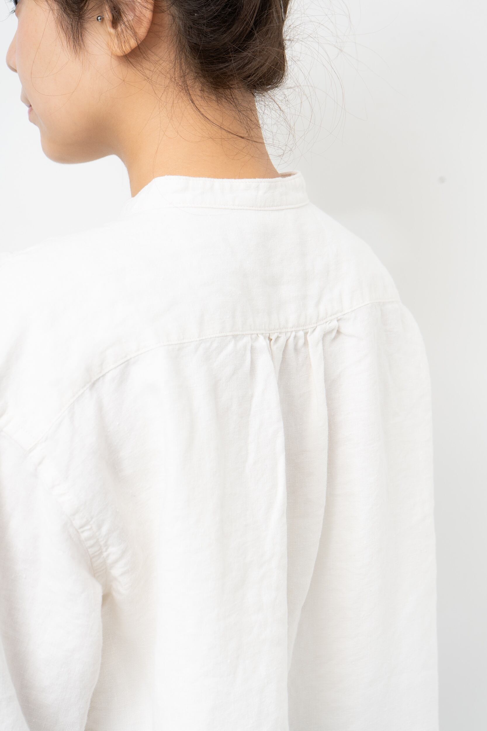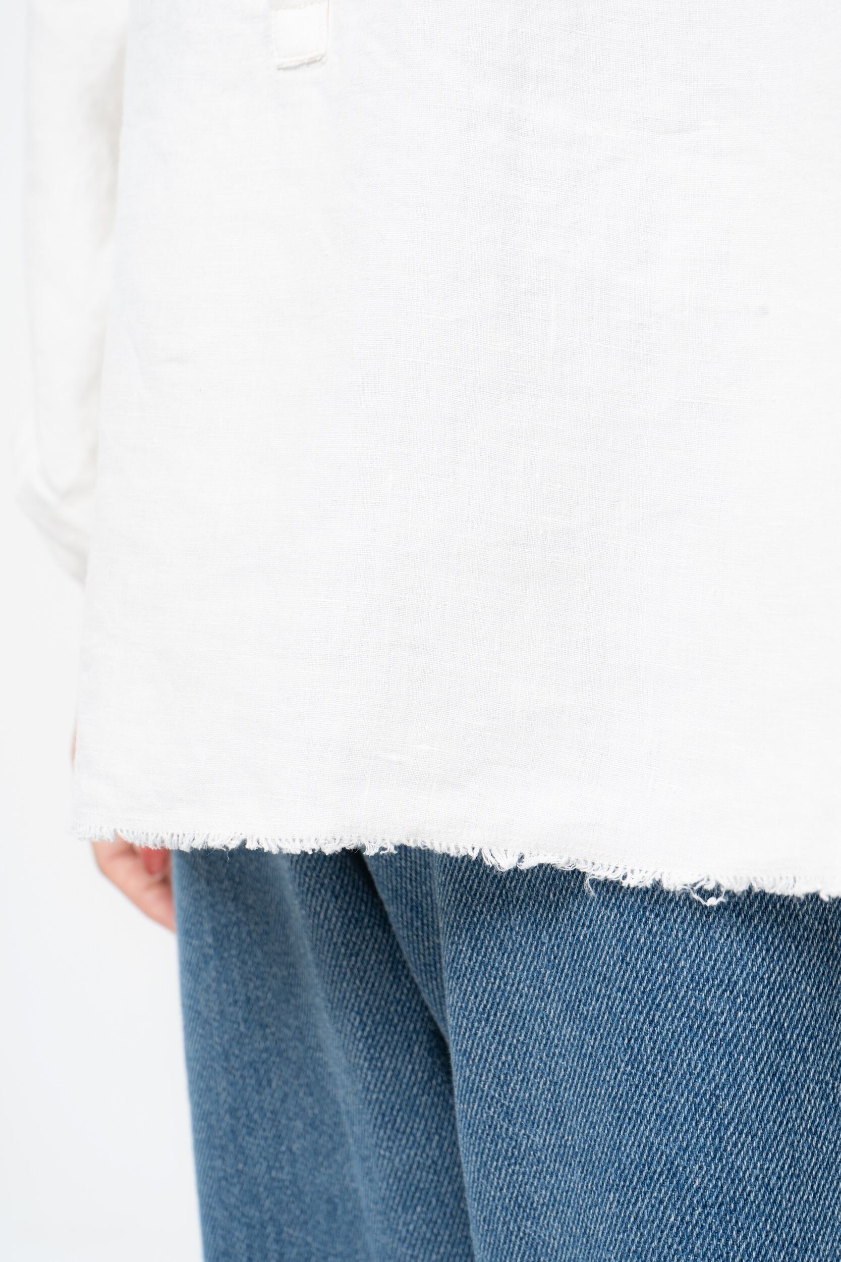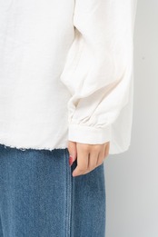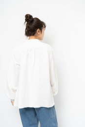 タテ・ヨコともに上質な麻糸を使用した生地で、クタッとした風合いになるような加工が施されており表面は微起毛になっている生地。繊維構造が中空のため、吸湿・吸汗性に優れており、通気性もよく洗濯するたびに繊維が丈夫になりしなやかになるため、肌あたりがよく柔らかな着心地になっていきます。