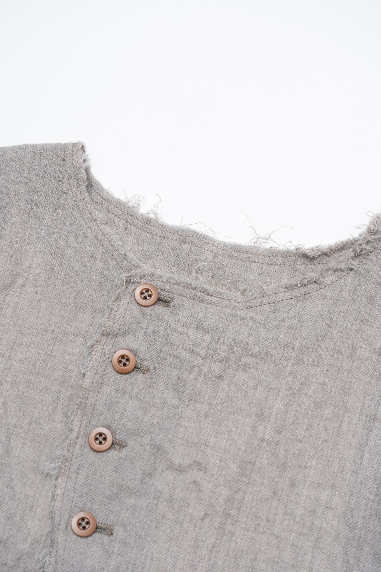 タテ糸にウール、ヨコ糸にリネンを使用した交織織物。仕上げにハードミルド加工(縮絨して毛羽立たせ、剪毛して圧絨することで生地表面に短い毛羽を持たせる)を施しカジュアルな表情にした生地。