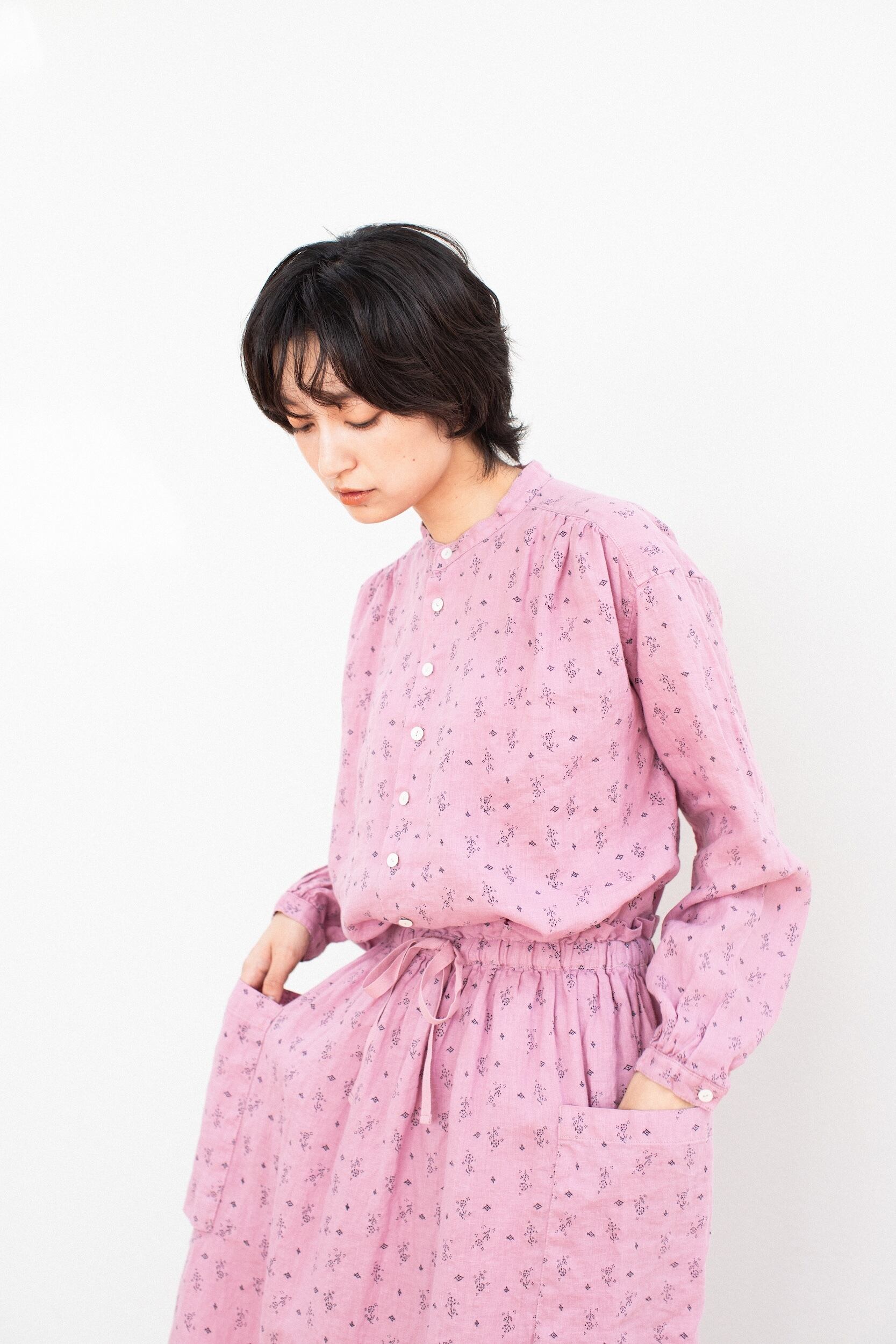 LINEN STANDCOLLAR BLOUSE